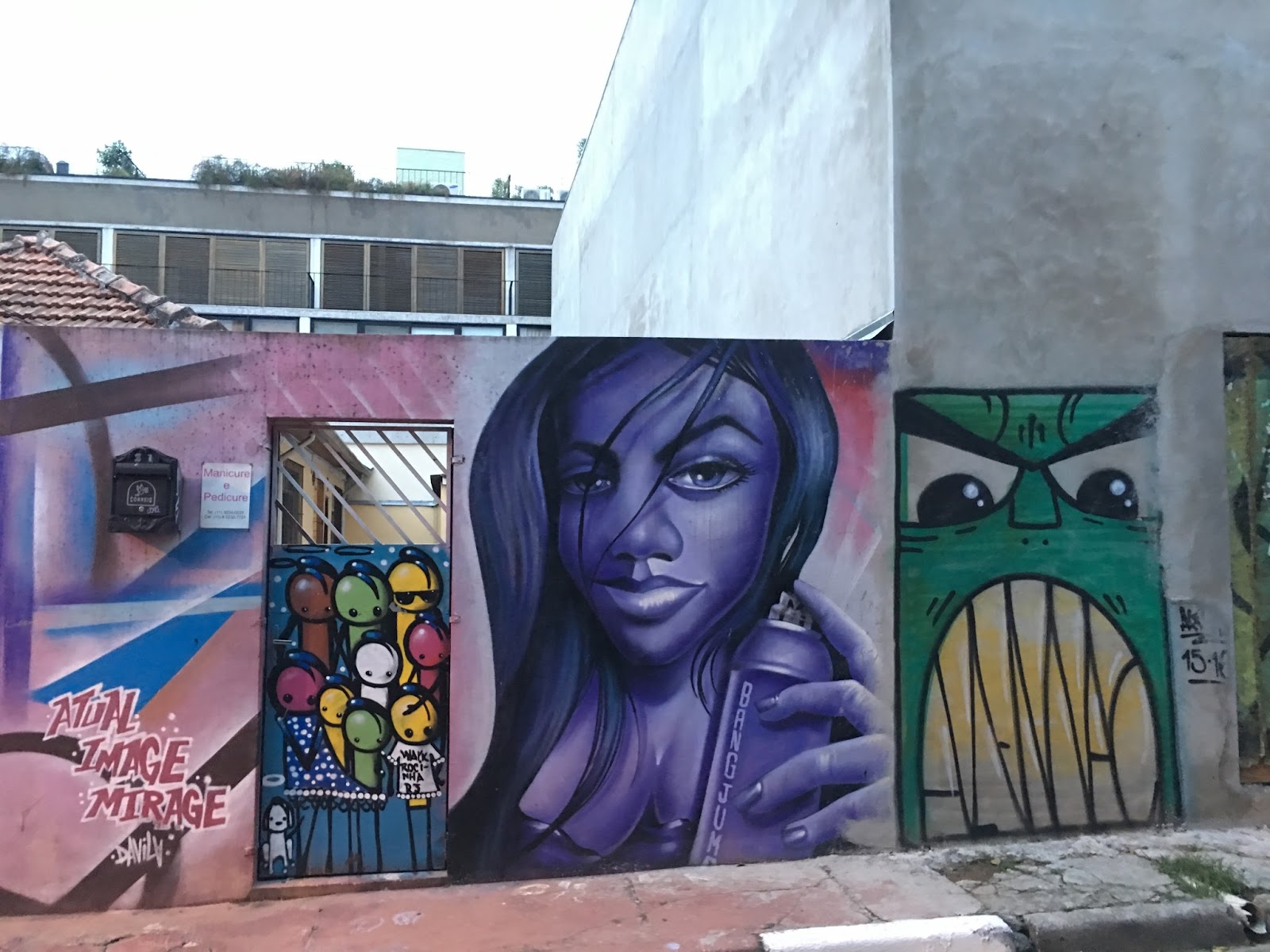 The next afternoon, after consulting Trip Advisor, and with Mariana as our tour guide, we visited Batman Alley, a 5 minute drive away from her home. It is a few alley-like streets where spray-can artists use their talents to paint beautiful murals on the walls, garage doors, etc. These pieces of art are ever-changing - if we were to return in another month, many of the pieces would be gone, replaced by new and captivating displays. Here are some of my favorites.