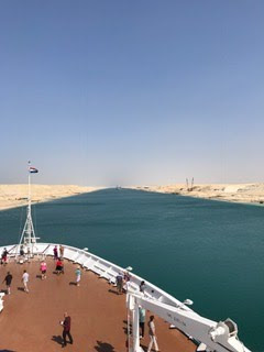 The Suez Canal is an artificial waterway in Egypt constructed in the mid 1800's which links the Red Sea with the Mediterranean Sea via the Isthmus of Suez. It is about 100 miles long. Once opened, it saved ships a 4,300 mile journey to get around from the Southern Indian or South Atlantic Oceans.